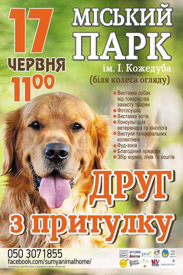 17 червня у Сумах пройде фестиваль “Друг з притулку”. Розпочнеться він об 11:00 в міському парку ім. Кожедуба, біля оглядового колеса.