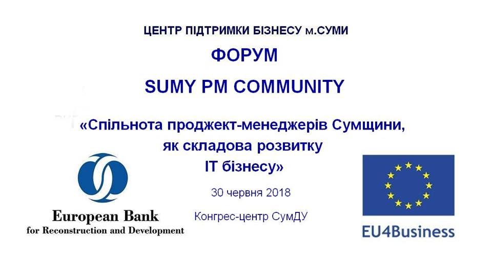 Центр підтримки бізнесу м. Суми запрошує взяти участь у Форумі «Спільнота проджект-менеджерів Сумщини, як складова розвитку ІТ бізнесу», який відбудеться 30 червня 2018 року в м. Суми на базі Конгрес-центру СумДУ (вул. Покровська, 9/1).