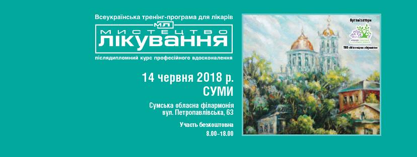 14 червня 2018 р. в м. СУМИ запрошуємо лікарів-терапевтів, лікарів загальної практики – сімейної медицини, кардіологів, педіатрів, неврологів, травматологів, гастроентерологів, ендокринологів, пульмонологів та ін. відвідати Всеукраїнську Тренінг-програму для лікарів “Мистецтво Лікування: післядипломний курс професійного вдосконалення”.