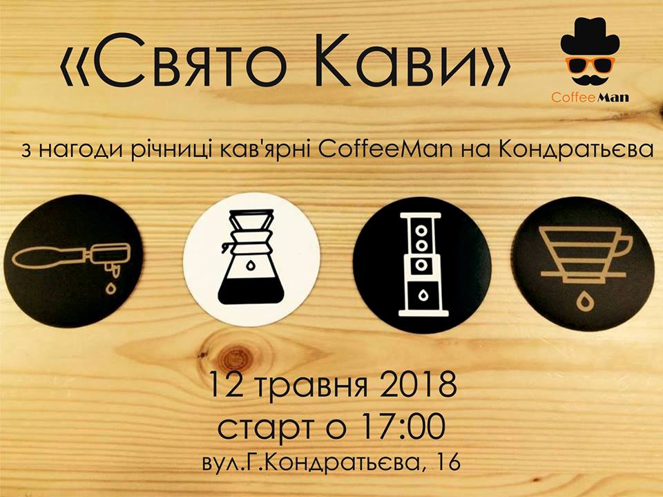 Друзі, запрошуємо вас на «Свято Кави» з нагоди річниці кав’ярні CoffeeMan на Кондратьєва!