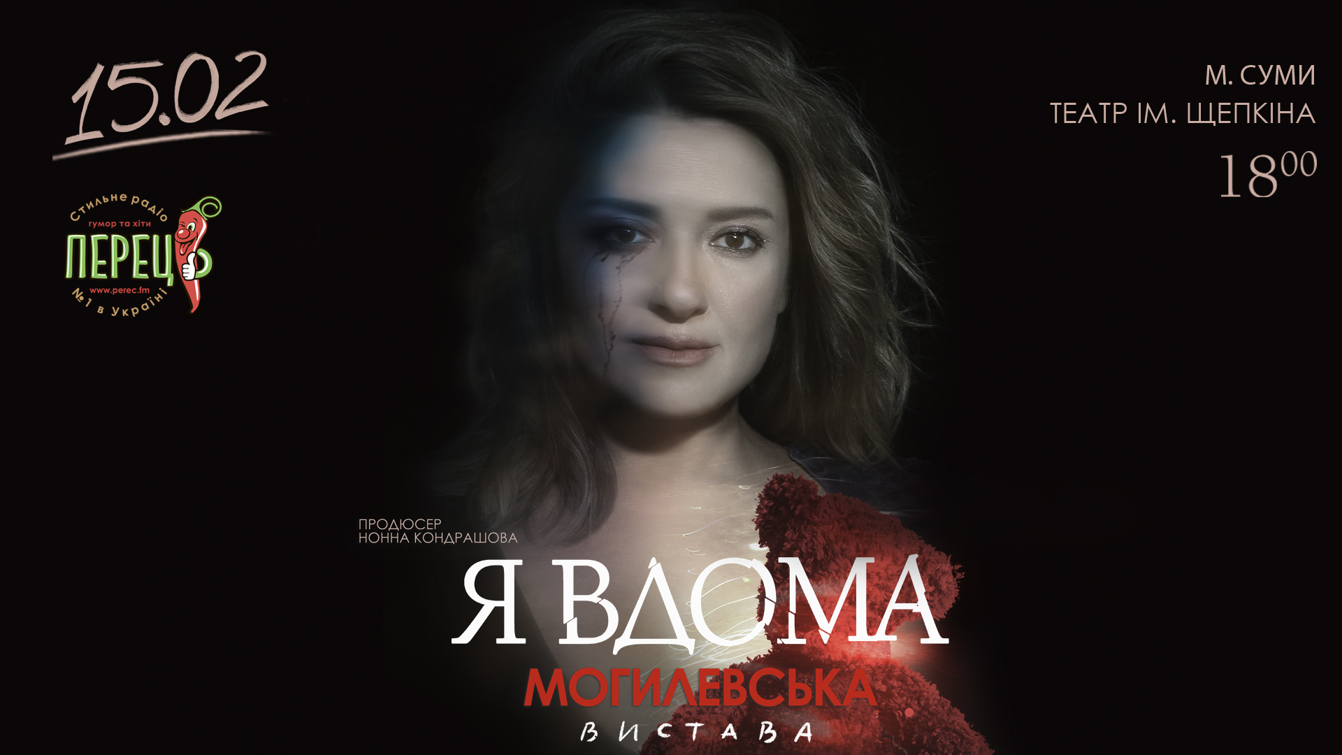 «Я вдома» – музична моновистава Наталії Могилевської, що другий сезон поспіль збирає аншлаги в Києві. У ній народна артистка України з успіхом дебютувала як актриса театру. Побачене, почуте, пережите вилилося не просто в слово й мелодію, а ціле драматургічне дійство, що стало основою вистави «Я вдома».