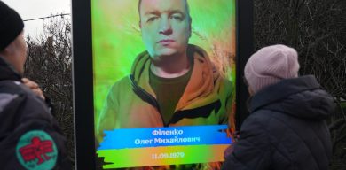 У Сумах на Театральній площі встановили сенсорний термінал із фотографіями та короткими даними бійців з Сум та Сумської громади, які зникли безвісти