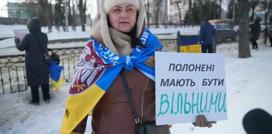 Біля фонтану Садко зібрались кілька десятків людей – рідні, друзі, знайомі військовослужбовців. Учасники заходу тримали плакати, прапори, фотографії бійців, яких чекають додому.
