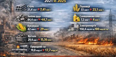Після початку повномасштабної війни обсяги виробництва основних видів продукції в Україні суттєво скоротилися. Порівняння показників 2021 року та 2025-го демонструє