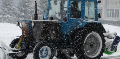У Сумах снігоприбиральний трактор застряг у снігу (фото)