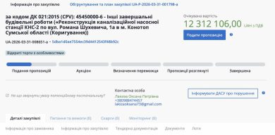 У Конотопі оголосили тендер на реконструкцію каналізаційної насосної станції КНС-2 на вул. Романа Шухевича, 1а. Очікувана вартість робіт — понад