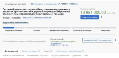 Роменська громада готується до масштабного латання дір! Управління житлово-комунального господарства Роменської міської ради (ЄДРПОУ 03352981) офіційно виставило на майданчику «Прозорро»