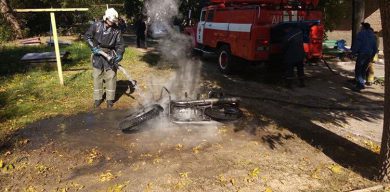 Сьогодні, 28 вересня, згорів мотоцикл, припаркований у дворі багатоповерхового будинку по вулиці Ціолковського, 7 у Глухові. Вогнеборці прибули на місце