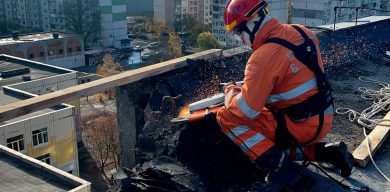 У Сумах другий день поспіль співробітники ДСНС надають допомогу мешканцям багатоповерхівки, пошкодженої внаслідок російської атаки. Зокрема, рятувальники-верхолази виконували висотні роботи: