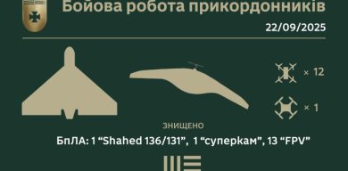 Упродовж доби на Сумщині бійці 5 прикордонного загону знищили 15 ворожих БпЛА: 13 FPV-дронів, з яких 3 на оптоволокні, та