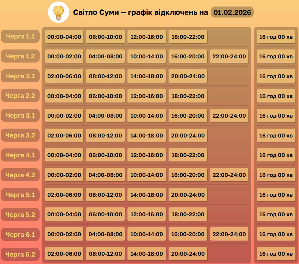 Завтра, 1 лютого, діятимуть графіки погодинних відключень відповідно до обсягів, доведених командою з НЕК “Укренерго”.