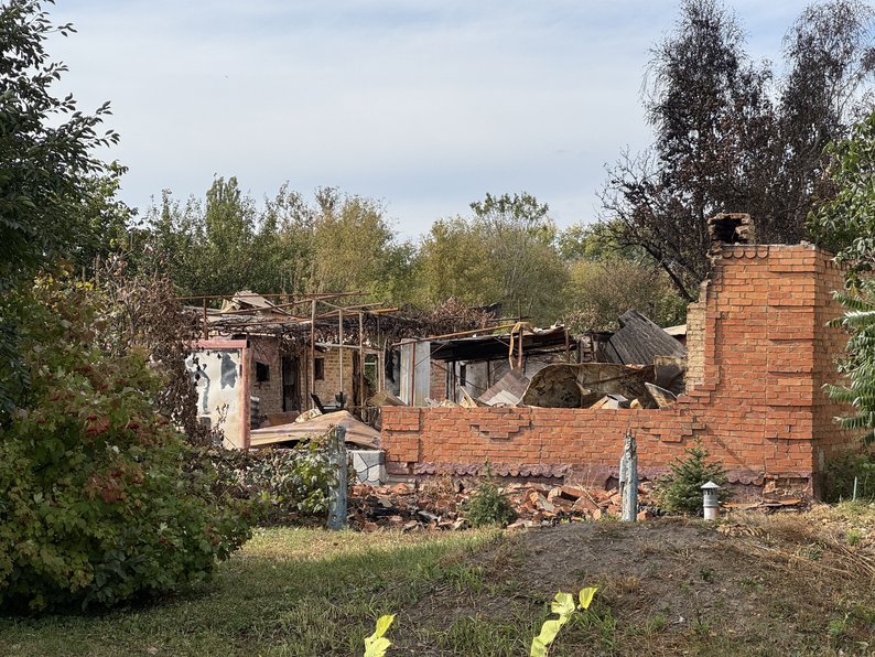 Пан Микола показав Суспільному, як армія РФ дронами зруйнувала господарчу споруду у дворі. Всі будівлі він збудував власними руками.