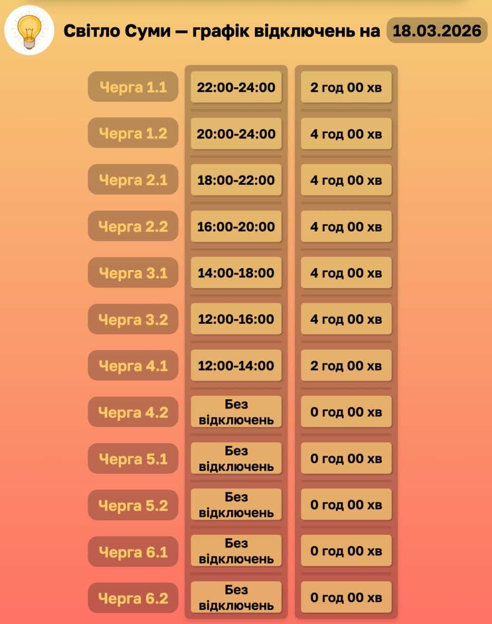 Додано графік відключень на 18 березня 11:27 / 18 березня 2026 Новини Додано графік відключень на 18.03.2026 Поділитися в соціальних мережах