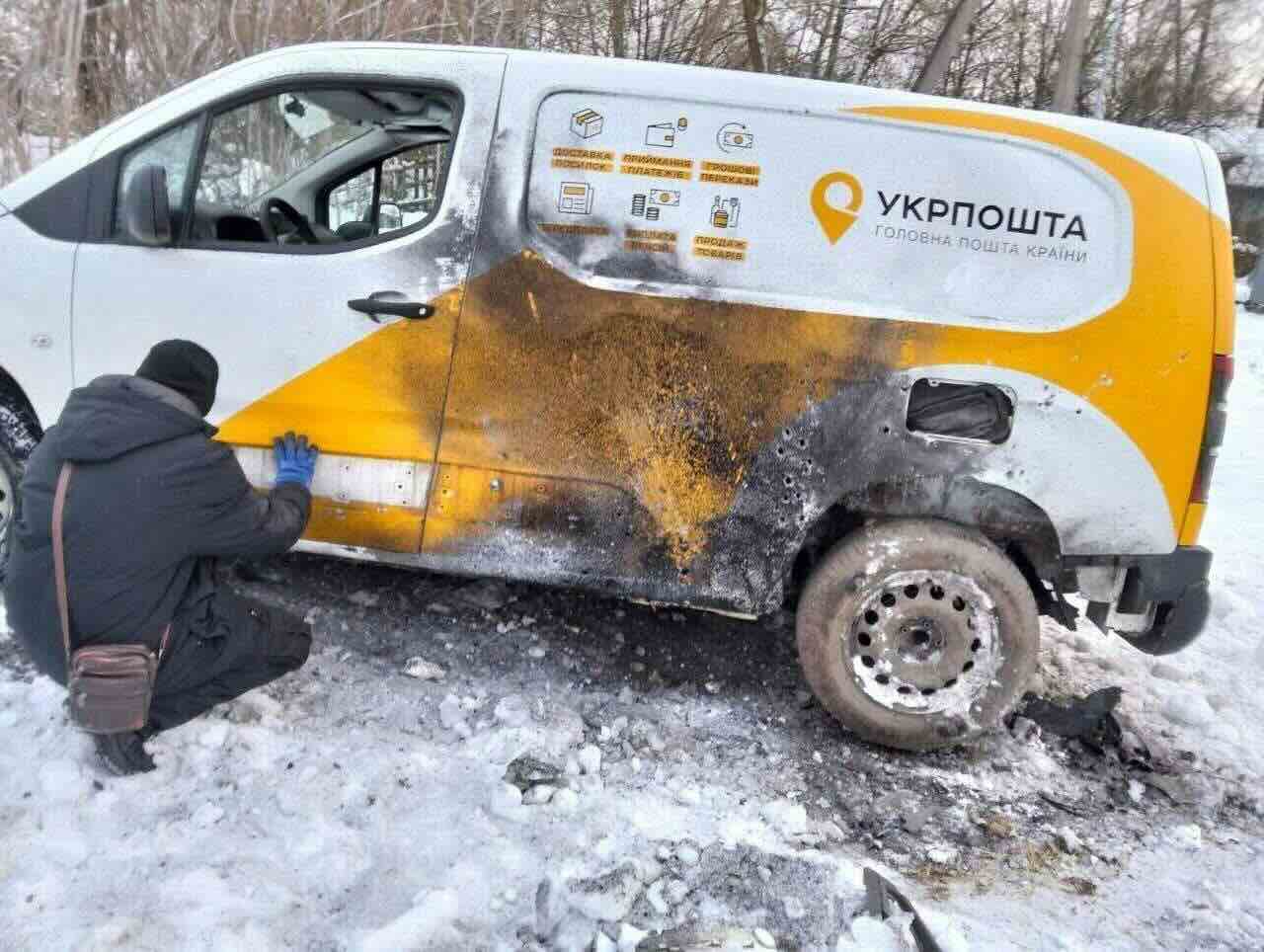 Російські війська обстріляли автомобіль «Укрпошти» у Сумській області. Ворожий дрон влучив у службову машину 15 січня в селищі Хутір-Михайлівський.
