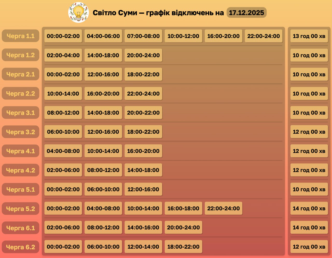 Стабільність у наш час — це коли ти точно знаєш, що світло вимкнуть, але не завжди знаєш, коли саме. Завтра, 17 грудня, жителі області знову будуть змушені підлаштовувати своє життя під ритм енергосистеми. «Укренерго» спустило нові ліміти, а це означає, що Сумщина повертається до вже звичного режиму — життя за графіком.