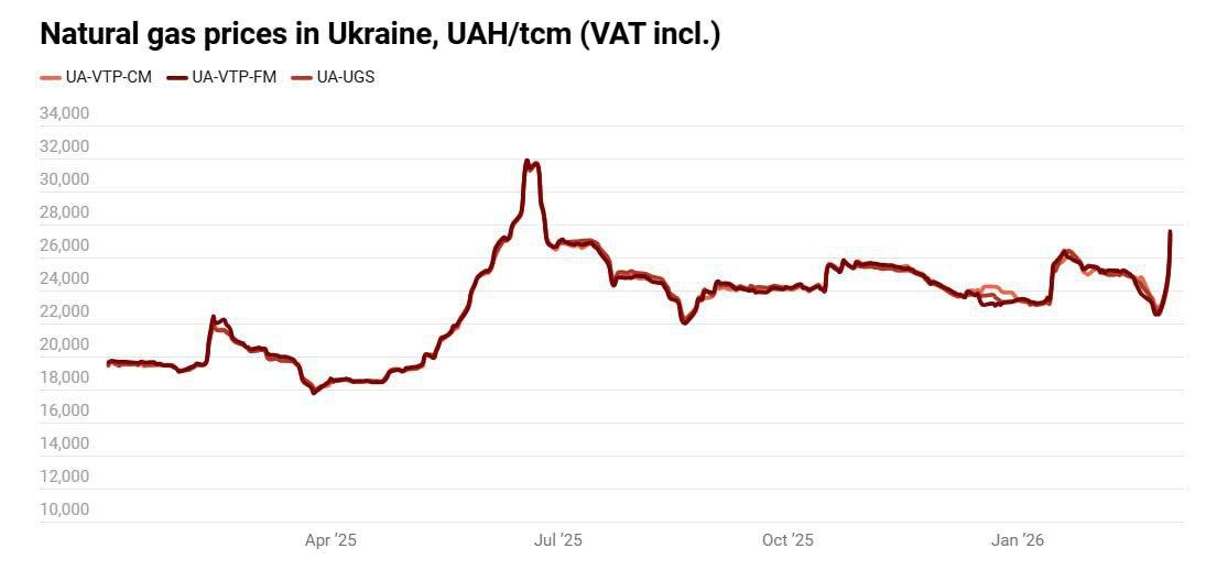 Вартість природного газу в Україні з початку війни на Близькому Сході зросла на 20% — до 27 800 грн за тис. куб. м (або 536 доларів за тис. куб. м).