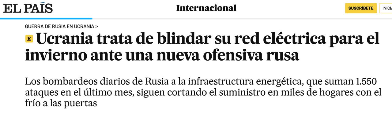 «На цей раз Росії не вдасться занурити Україну в темряву. Вони можуть зробити наше життя нестерпним, дуже, дуже складним… Але їм не вдасться зруйнувати нашу енергетичну систему. Ми переживемо наступної зими, як пережили попередні. І ступінь страждань нашого населення залежатиме передусім від масштабу російських атак та ефективності оборони наших ВПС», – заявив Максим Тимченко в інтерв’ю El Pais.