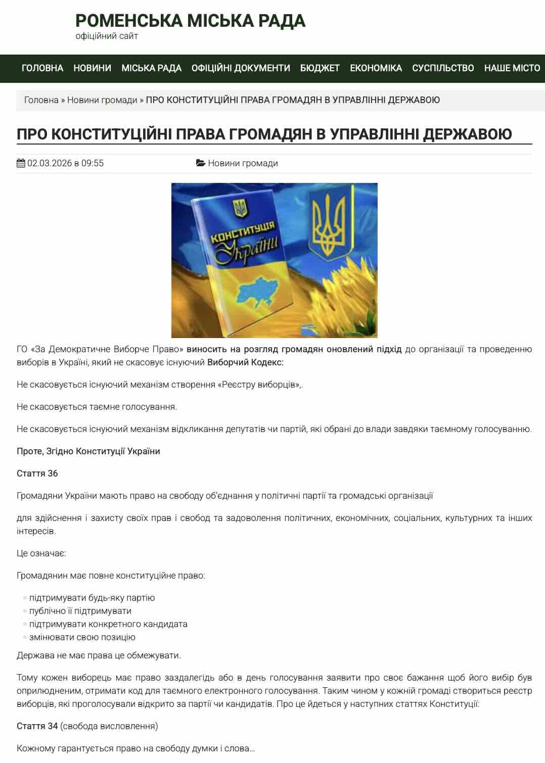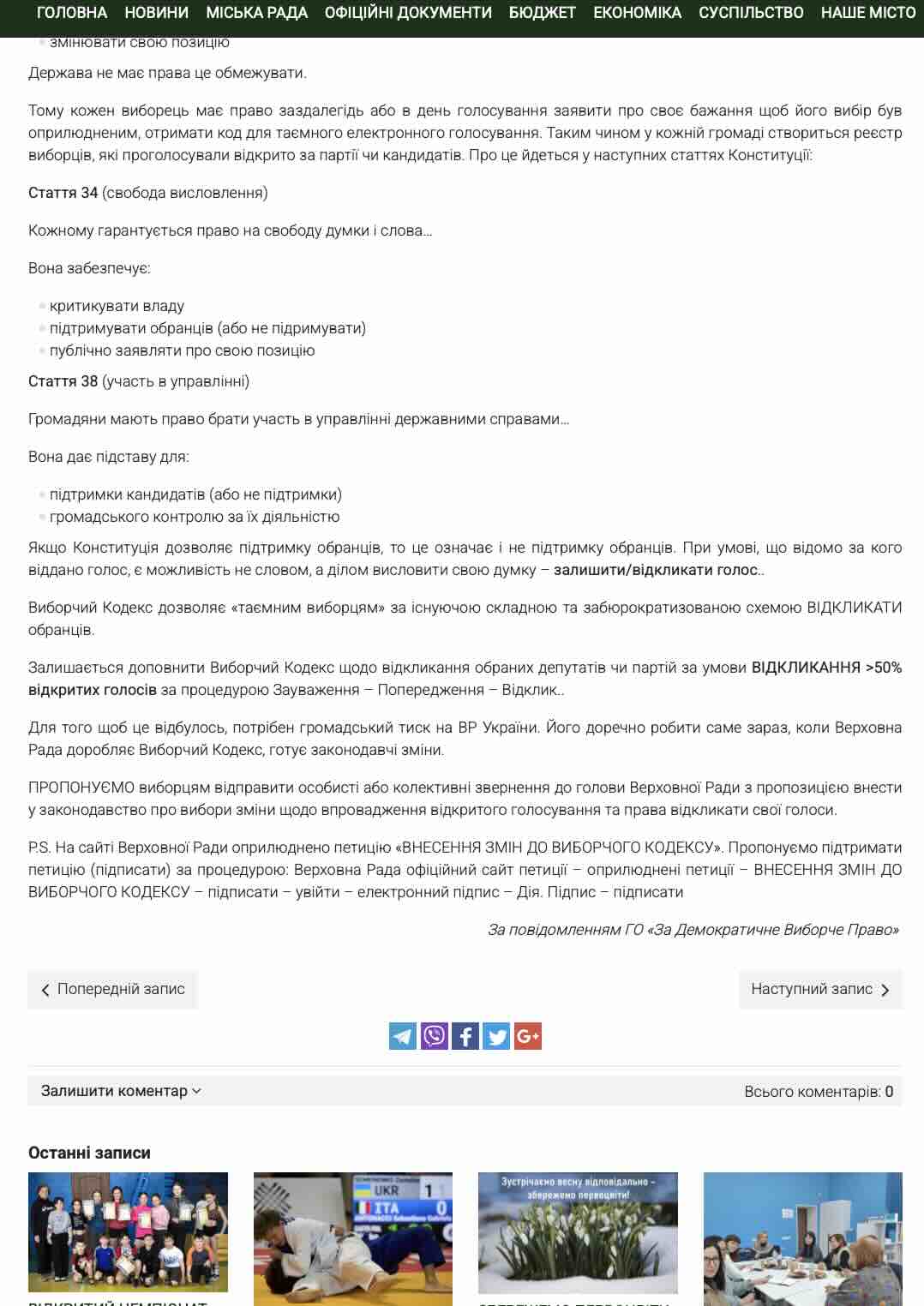 На офіційному ресурсі міськради з’явилася пафосна публікація від такої собі ГО «За Демократичне Виборче Право», яка пропонує жителям громади ні багато ні мало — змінити підхід до виборів, скасовувати результати голосувань та тиснути на Верховну Раду.