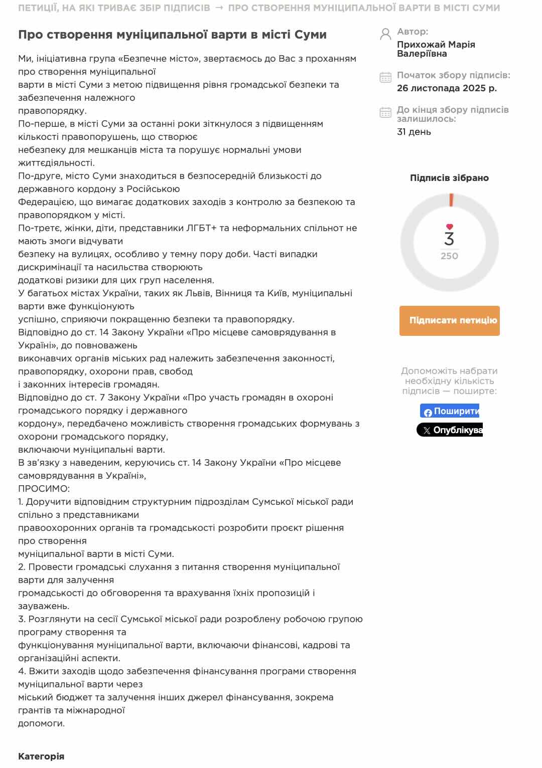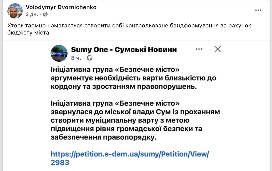 Петиція ініціативної групи «Безпечне місто» читається як фантастичний роман. Автори вимагають створити Муніципальну варту, бо, мовляв, у Сумах страждають вразливі верстви населення: