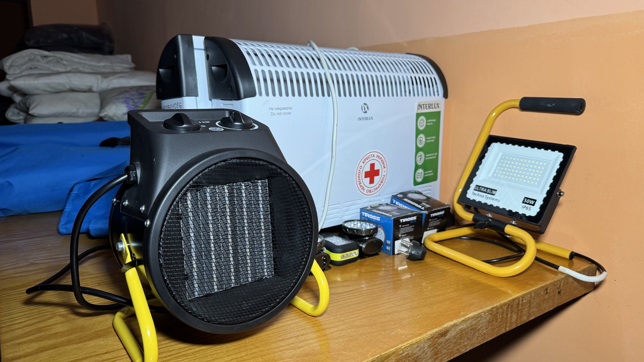 В укритті іншої школи, де побували кореспондентки Суспільного, для роботи Пункту незламності підготували все необхідне: генератори, обігрівачі, подовжувачі, місце для чаювання, аптечка і навіть невеличка бібліотека.