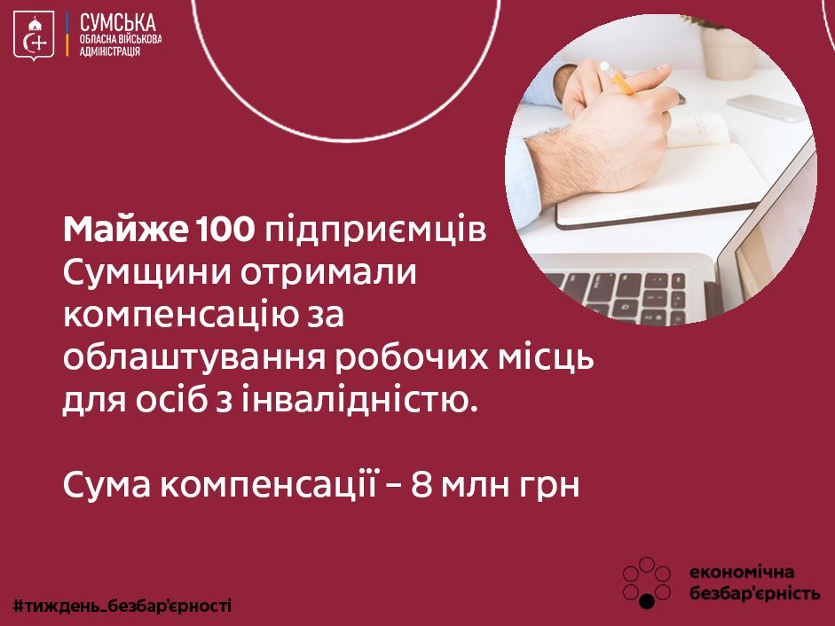 Майже 100 підприємців Сумщини отримали компенсацію за облаштування робочих місць для осіб з інвалідністю
