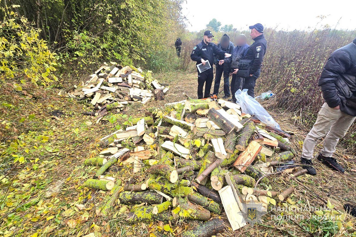 На місці події правоохоронці виявили бензопили, сокири та вже зрубані дерева. Все знайдене було вилучено.