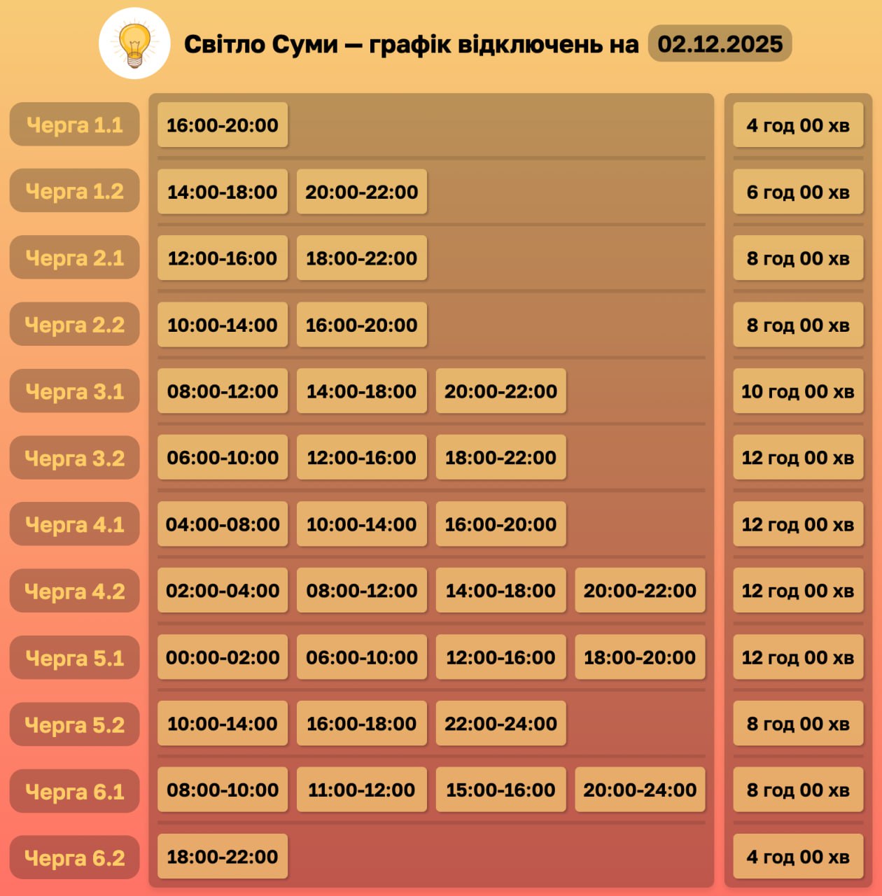 АТ «СУМИОБЛЕНЕРГО» терміново звернулося до споживачів із важливим повідомленням: графіки погодинних відключень (ГПВ) оновлено. Причина незмінна — нові обсяги обмежень, доведені командою з НЕК «Укренерго».