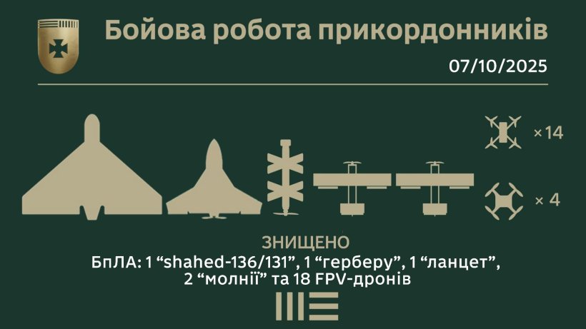 Тим часом на Донеччині вогнева група 3 прикордонного загону ліквідувала ударний дрон «shahed-136/131», а бійці бригади «Сталевий кордон» на Чернігівщині мінусували 1 «герберу».