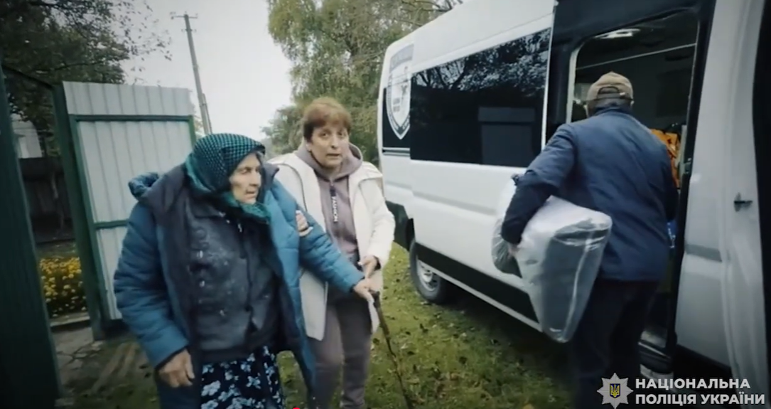 Люди вирішили виїхати, коли російські обстріли знищили сусідні будинки. Разом із найнеобхіднішими речами вони забрали й кота Тошу. Поліцейські допомогли літній жінці сісти до автомобіля, взяли багаж і супроводили родину до безпечного місця.