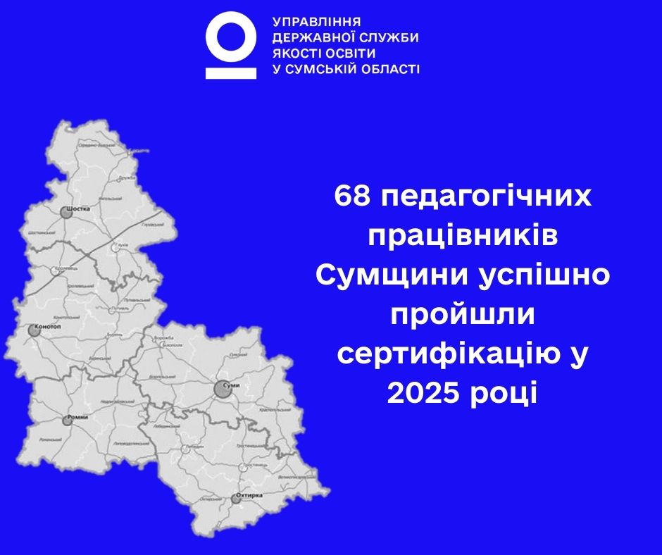 У Сумській області завершилася сертифікація педагогічних працівників, яка у 2025 році охопила п’ять напрямів учительської діяльності. Рішення про визначення порогових балів комісії Державної служби якості освіти України ухвалили під час засідань 3–4 грудня.