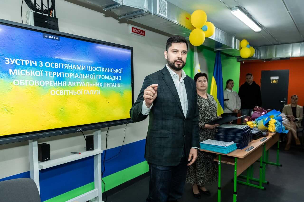 Парламентар Олександр Качура привітав освітян Шостки з професійним святом, наголосивши на їхній важливості для прикордонних громад, та заявив про необхідність запровадження фінансових надбавок для вчителів прифронтових регіонів, зокрема Сумщини.