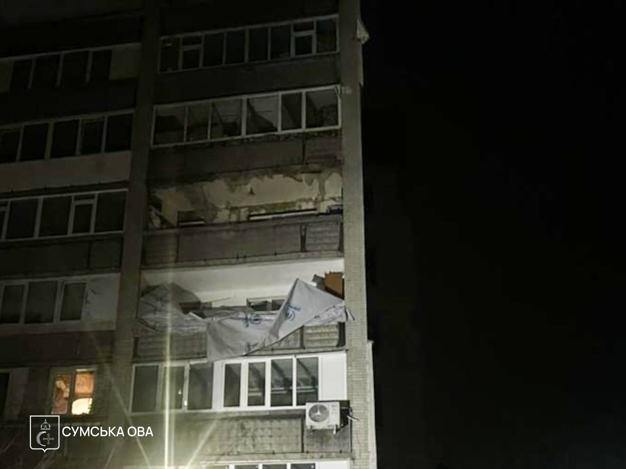 Нічний удар по Сумах: влучання у житловому районі — пошкоджено будинок і магазин