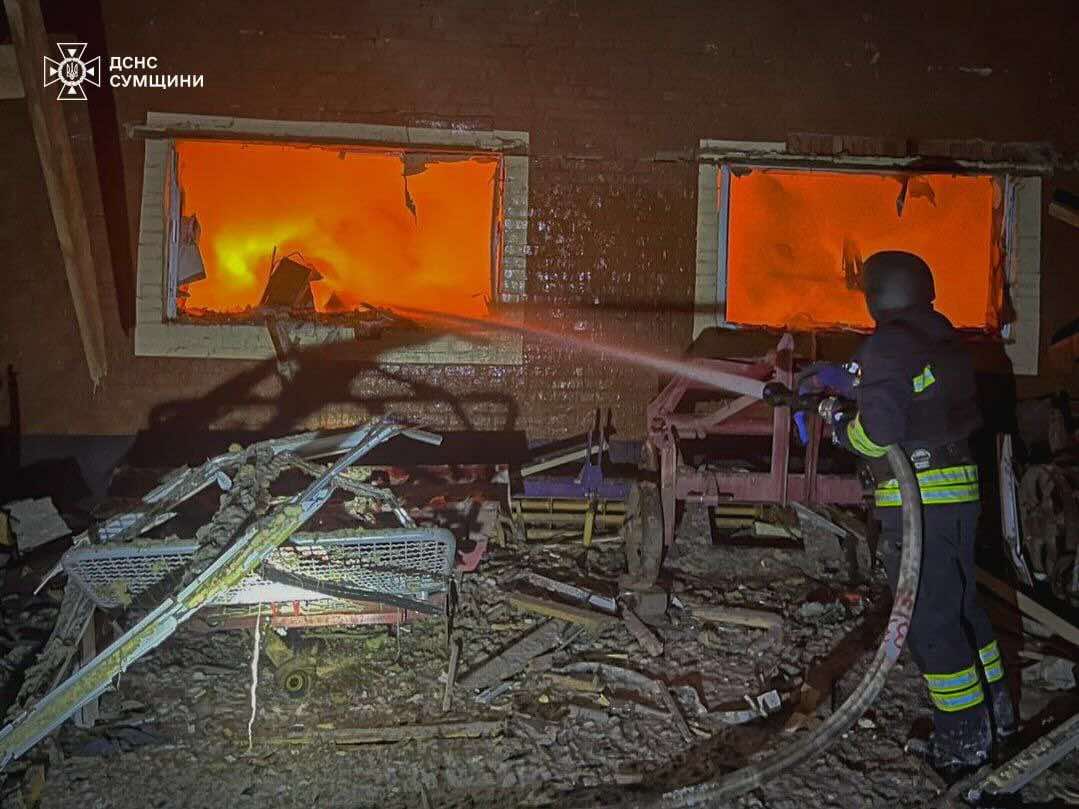 У ніч на сьогодні ворог завдав удару по Тростянецькій громаді. Внаслідок атаки виникла пожежа, яку зафіксували на оприлюднених фото.