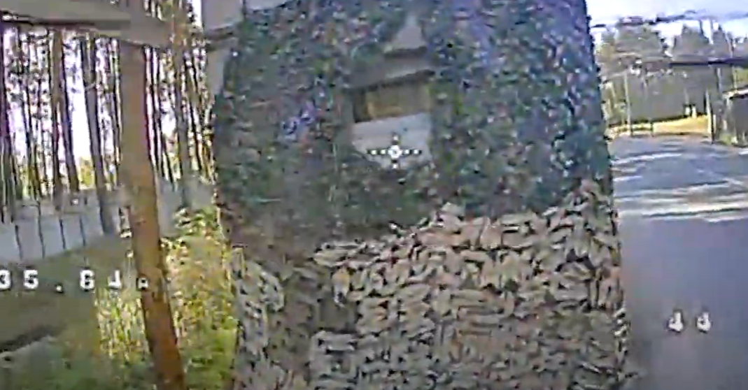 Схоже, що російські військові не очікували атаки на віддалений та захищений антидроновими сітками об’єкт та спробували заховатися. Але камера на оптоволокні дає чітке зображення.