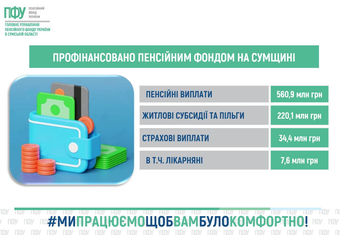 Пенсійний фонд Сумщини успішно профінансував понад 815 мільйонів гривень соціальних виплат на початку квітня