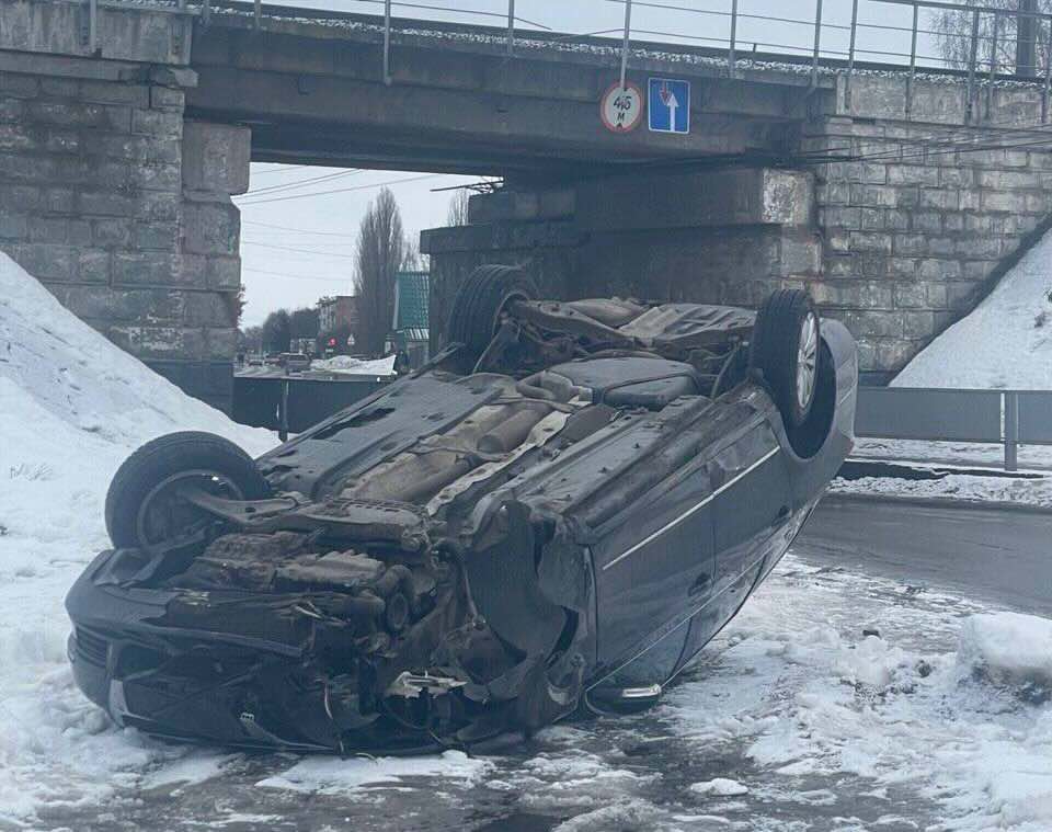 Уранці в Конотопі сталася дорожньо-транспортна пригода, внаслідок якої легковий автомобіль перекинувся на дах.
