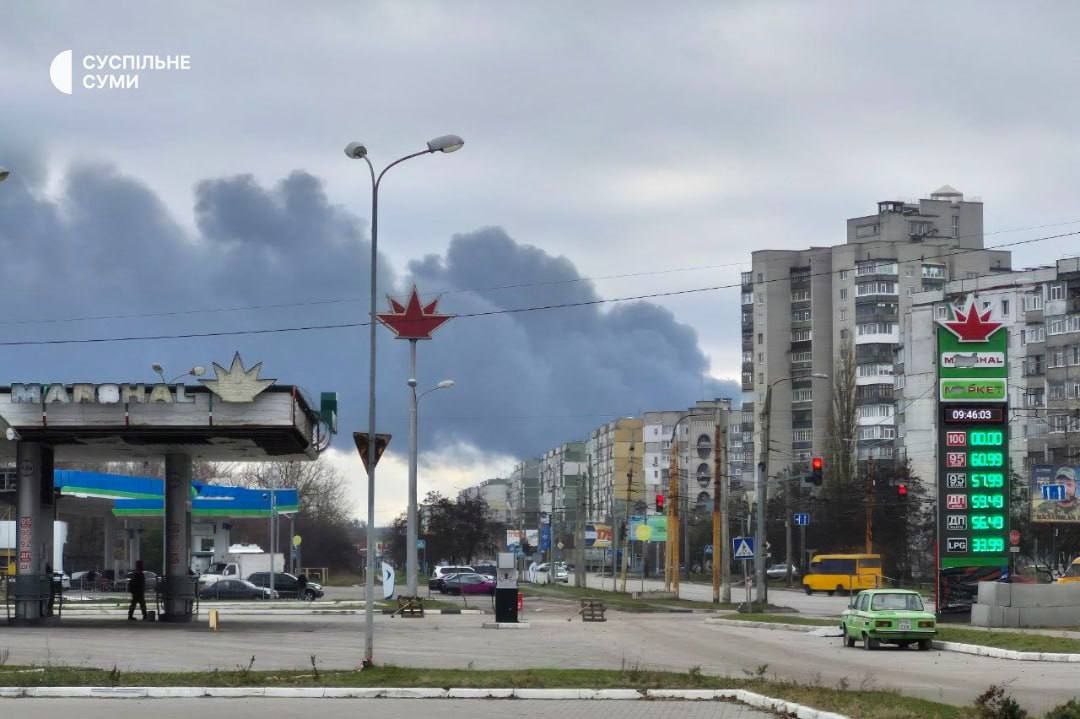 Поки офіційна інформація змінюється, сумчани бачать одне й те саме: над містом піднімається стіна густого диму, який видно з різних районів.