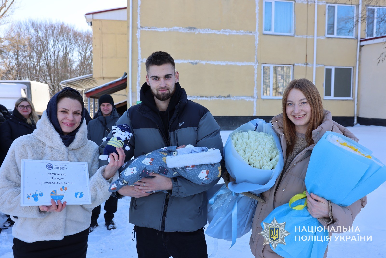 У сім’ї правоохоронців Сумщини — радісна подія: народився син. Щастя цієї миті з молодими батьками розділили колеги по службі, друзі та рідні. З квітами, щирими усмішками й теплими словами вони зустріли родину біля пологового будинку.