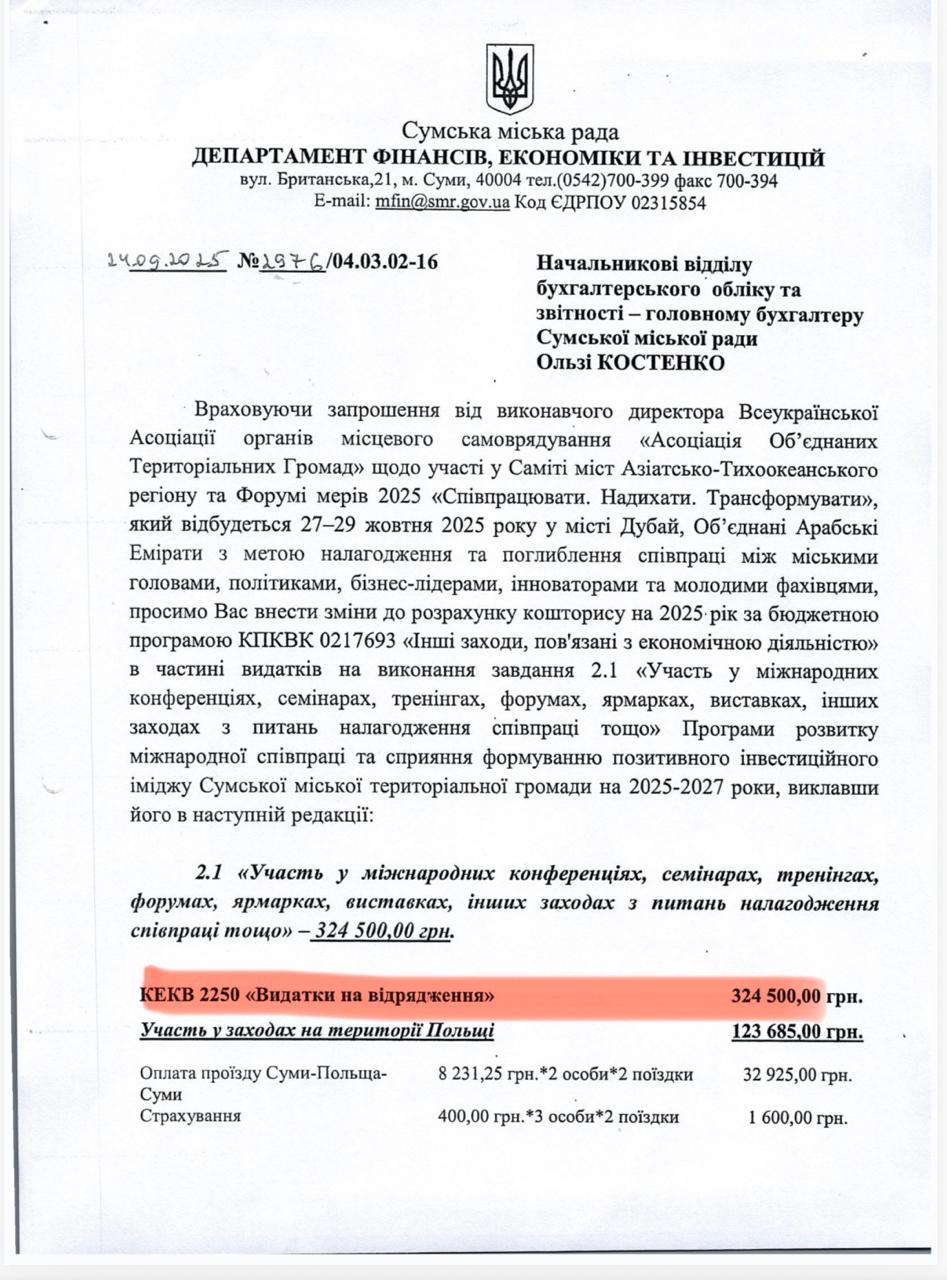 Поки Суми під обстрілами — чиновники на “службі” в Дубаї та Скандинавії