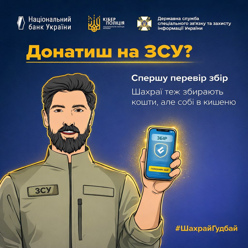 Пам’ятайте: справжня допомога ЗСУ — це перевірені ініціативи. Не дайте шахраям скористатися вашою довірою. У разі виявлення підозрілих зборів або фактів шахрайства — повідомляйте поліцію.
