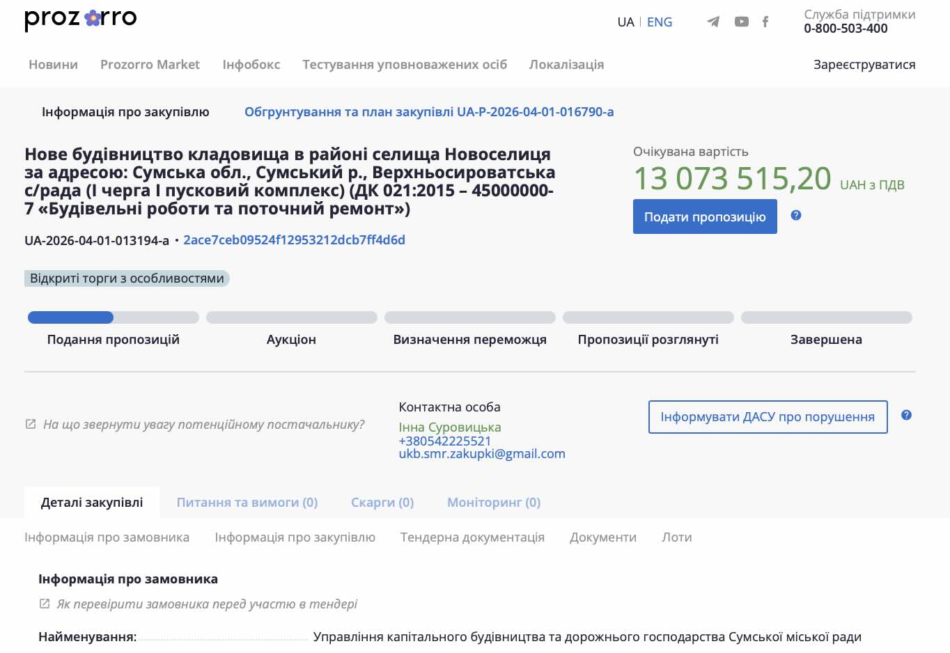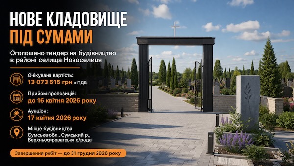 У Сумах планують збудувати нове кладовище — на це з місцевого бюджету готові витратити понад 13 млн грн. Відповідний тендер вже оголосили на платформі Prozorro.