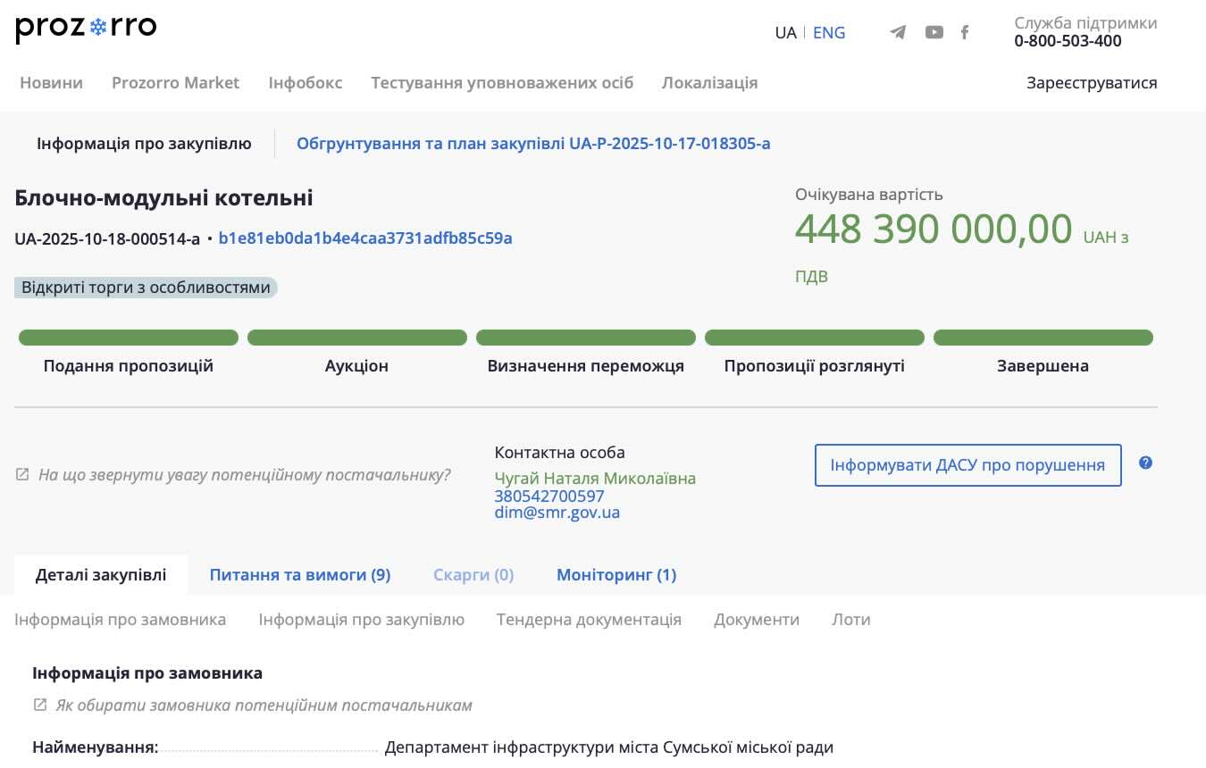 Якщо ви думали, що головна подія 2025 року — це якісь там політичні зміни, то ви помиляєтесь. Головна подія — це тендер UA-2025-10-18-000514-a. Під пильним керівництвом нинішнього очільника міста Департамент інфраструктури вирішив гульнути на всі гроші (а точніше — на 448 мільйонів гривень) і закупити 20 блочно-модульних котелень.