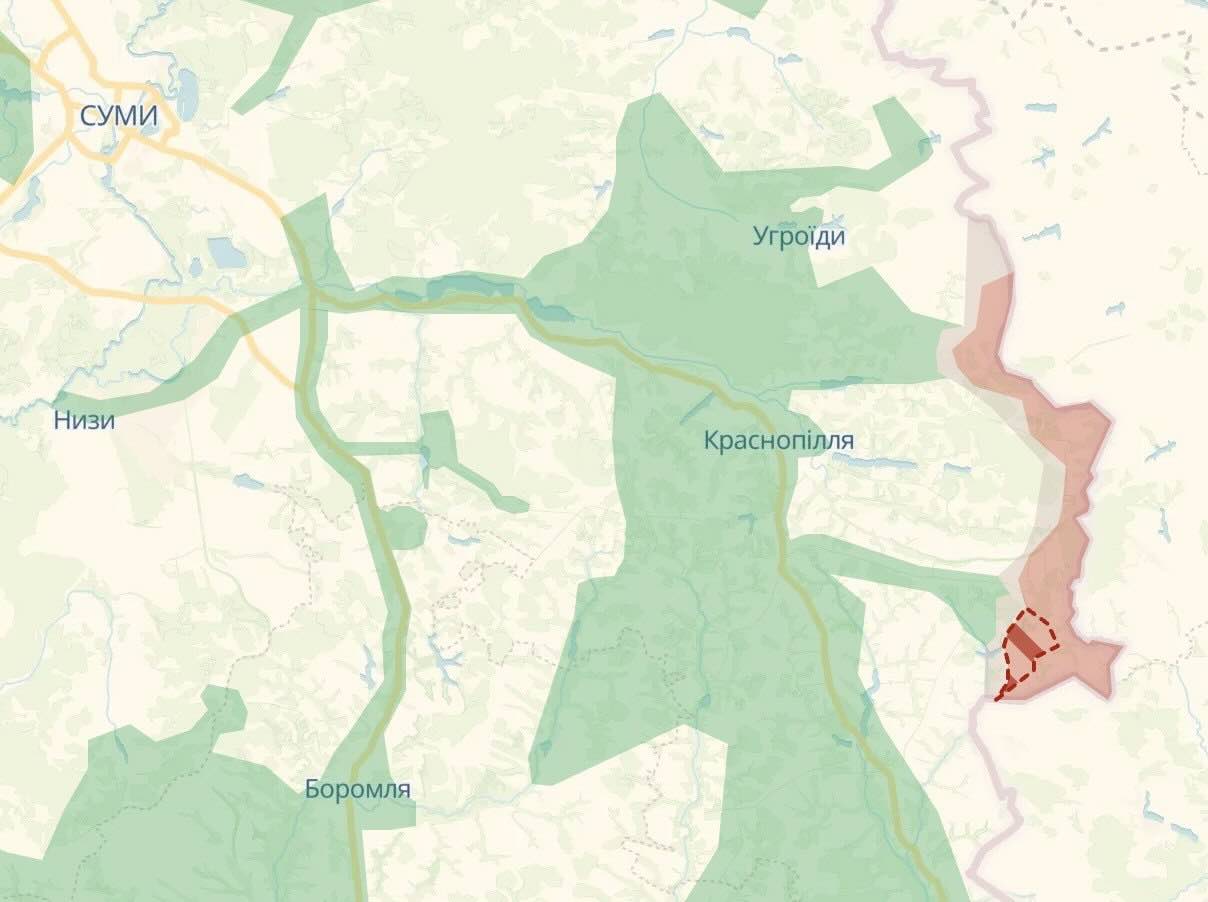 Росія наступає на Сумщині: черговий прорив біля Грабовського 15:13 / 03 квітня 2026 Новини За даними українського військово-аналітичного ресурсу Deep State, війська РФ просунулися в районі Грабовського на кордоні Сумської області. Підписуйтесь на нас у ТЕЛЕГРАМ Підписуйтесь на нас в ІНСТАГРАМ Поділитися в соціальних мережах