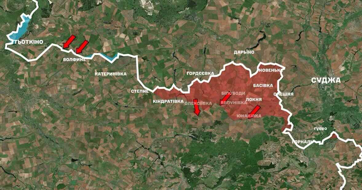 І що особливо тривожно — на офіційній карті Генштабу ЗСУ видно ознаки нового російського наступу на Сумщині в районі села Волфине. Ворог намагається просунутися саме тут, відкриваючи ще один напрямок тиску на область.