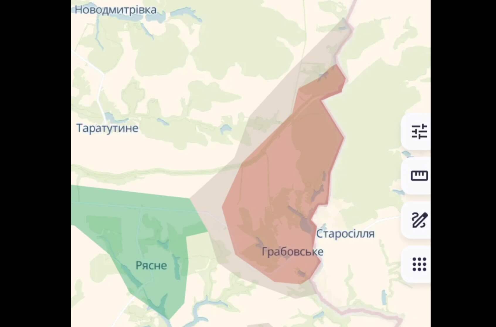 Аналітики проєкту Deep State оновили мапу бойових дій і позначили розширення зони контролю російських військ поблизу Грабовського Краснопільської громади. За їхніми даними, так звана червона зона на цій ділянці збільшилася на 4,8 км². (відео просування можна переглянути тут).