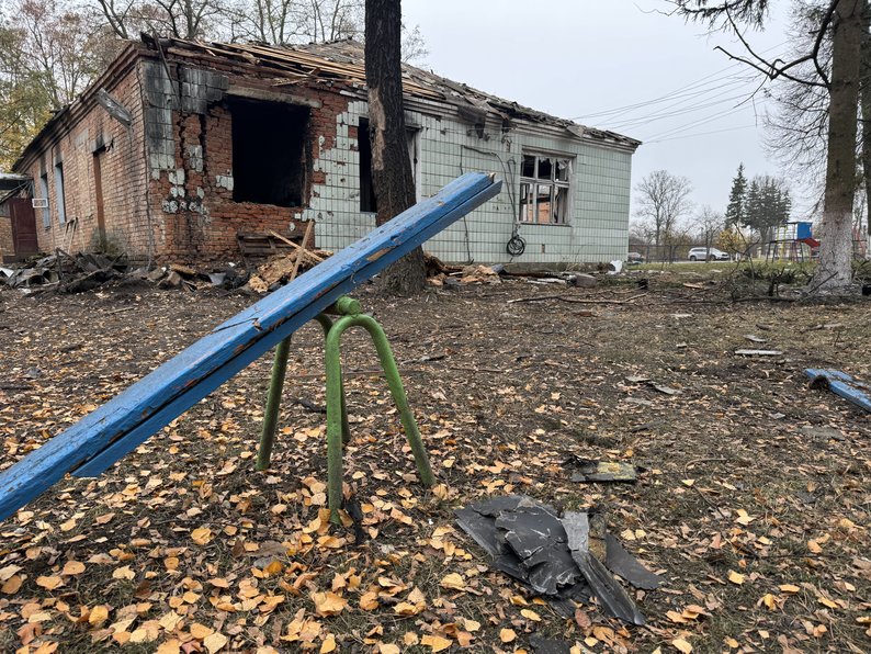 Серед пошкоджених будівель також сільський будинок культури. Директорка Оксана Самойленко працює тут два місяці, розповідає: “Ми недавно працюємо, до нас почали дітки приходити. Концертів немає, почали гуртки проводить. Гелловін було в нас свято, тепер навіть страшно, як діти будуть сюди приходити, не знаю…”.