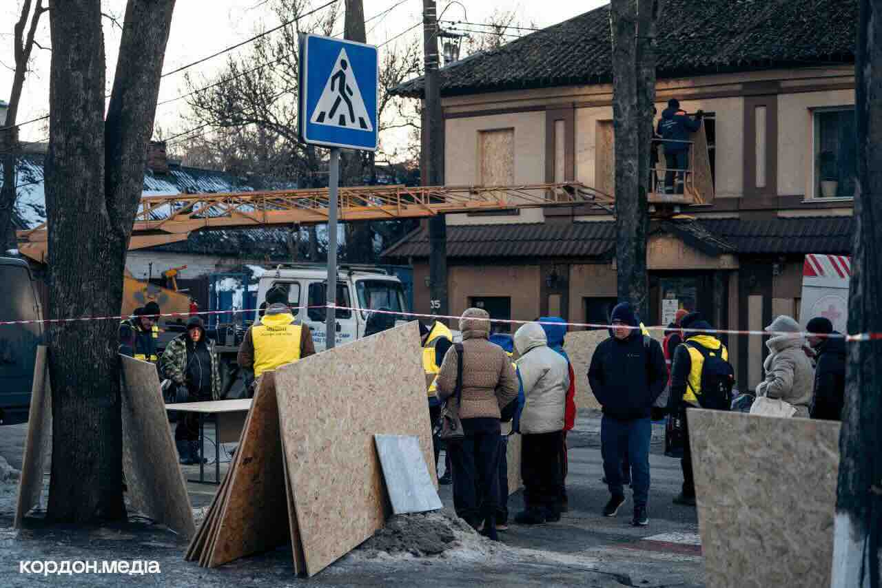 Один із БпЛА поцілив у дах будівлі та не вибухнув. Ще два дрони вдарили поблизу — унаслідок прильотів повилітали вікна, пошкоджені кав’ярні та магазини.