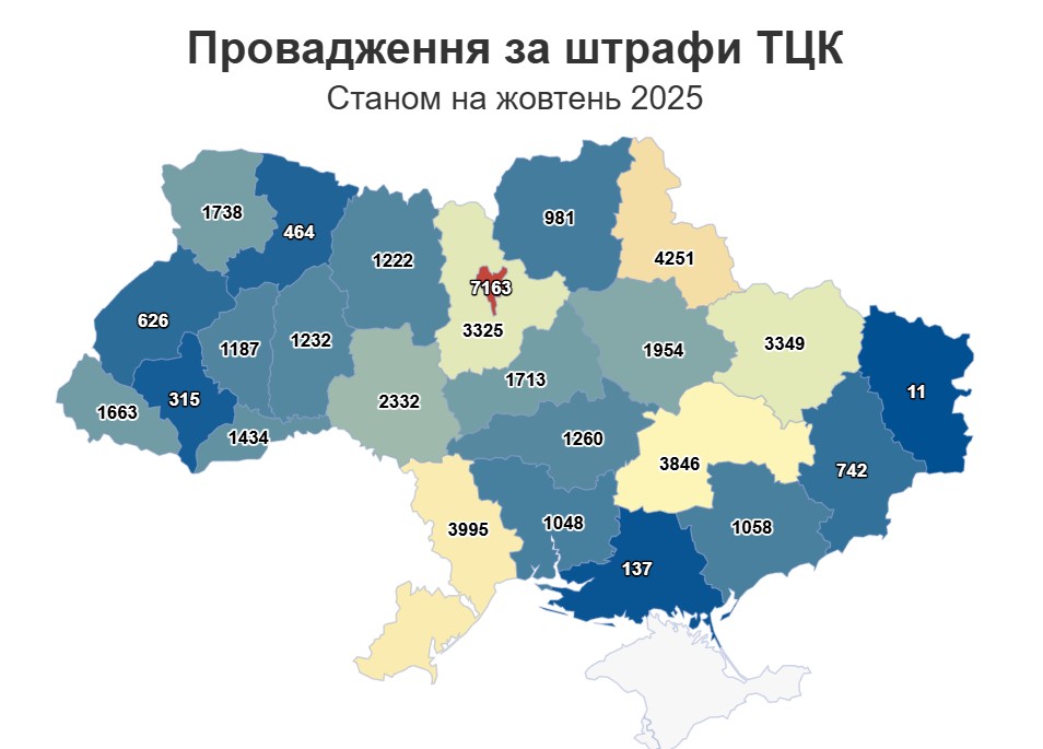 47 046 штрафів за порушення правил військового обліку було зафіксовано на початок жовтня 2025 року. 14 454 провадженння — це близько третини — наразі вже завершені.
