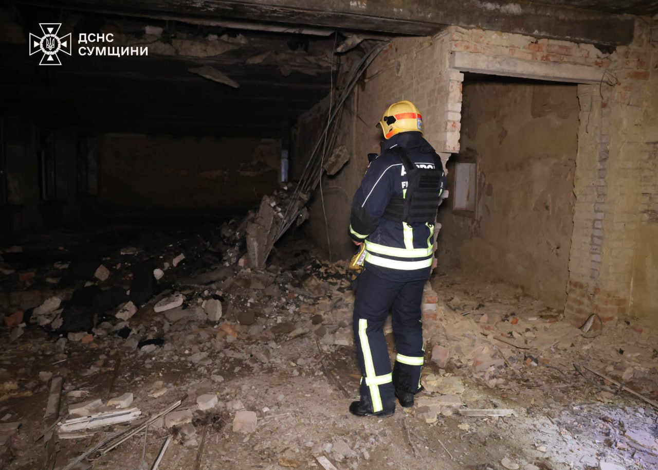 ▪️У Сумах співробітники ДСНС обстежили місце влучання. Пошкодження зафіксовано як у житловому секторі, так і в нежитловій будівлі.