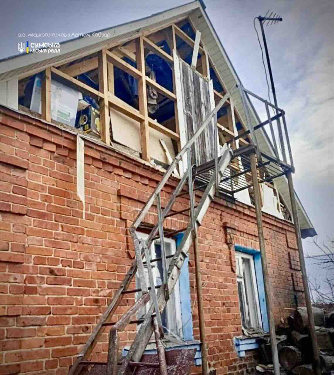 Внаслідок удару пошкоджено дах та вікна будинку.